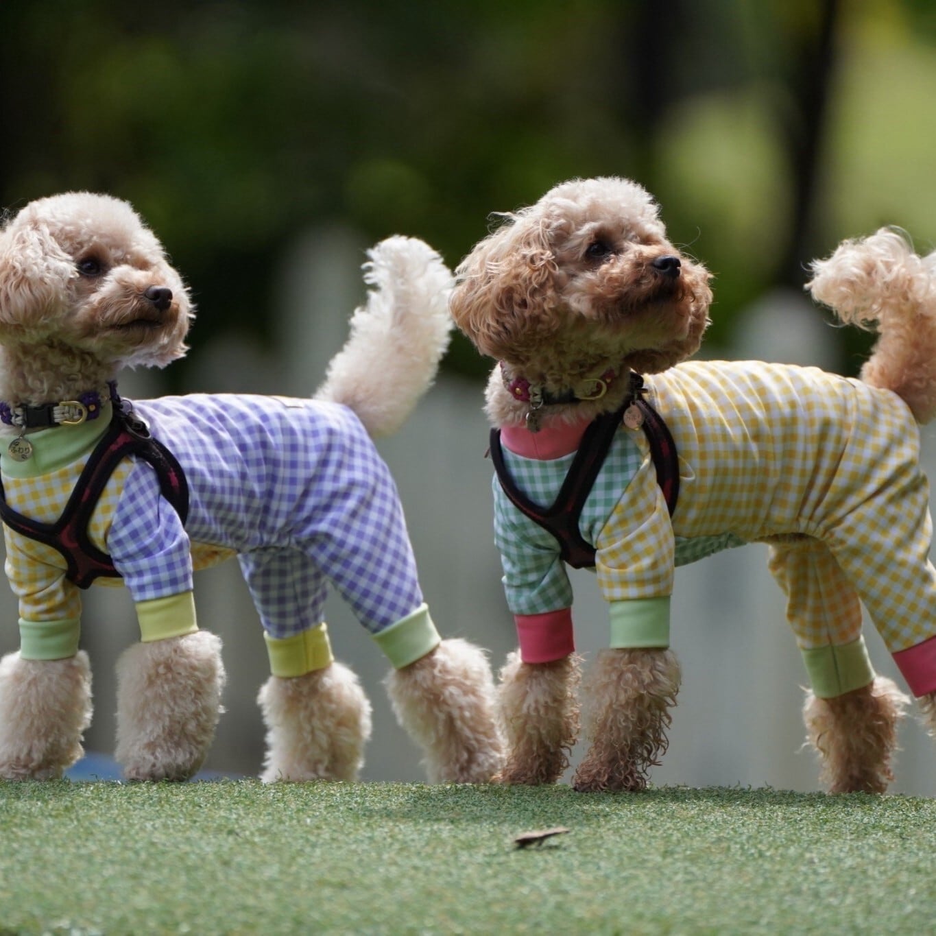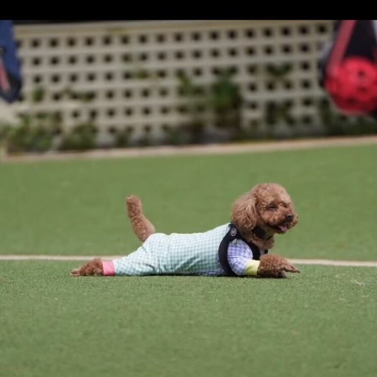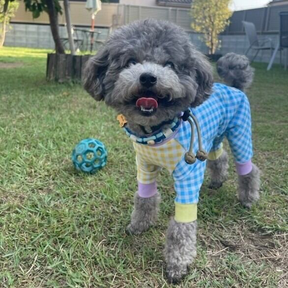 ワンちゃんの動きやすさを考えて良く伸びる2WAY生地を使用、