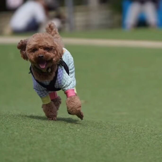 ワンちゃんの動きやすさを考えて良く伸びる2WAY生地を使用、