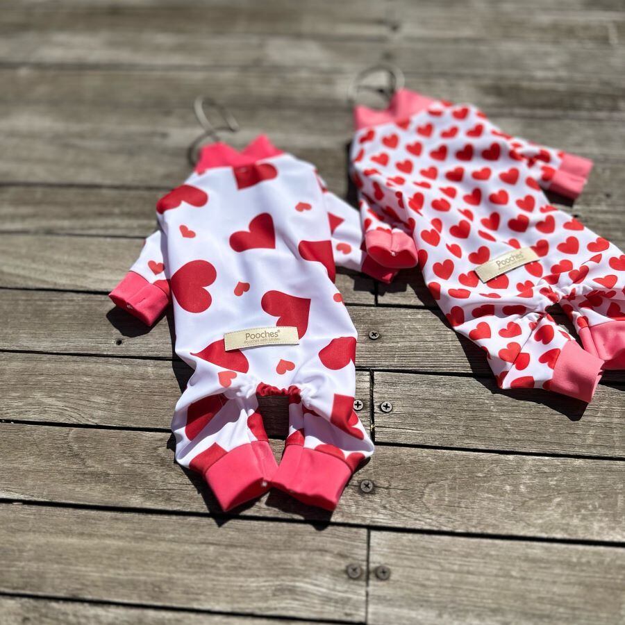 可愛いハート柄のカバーオールです。