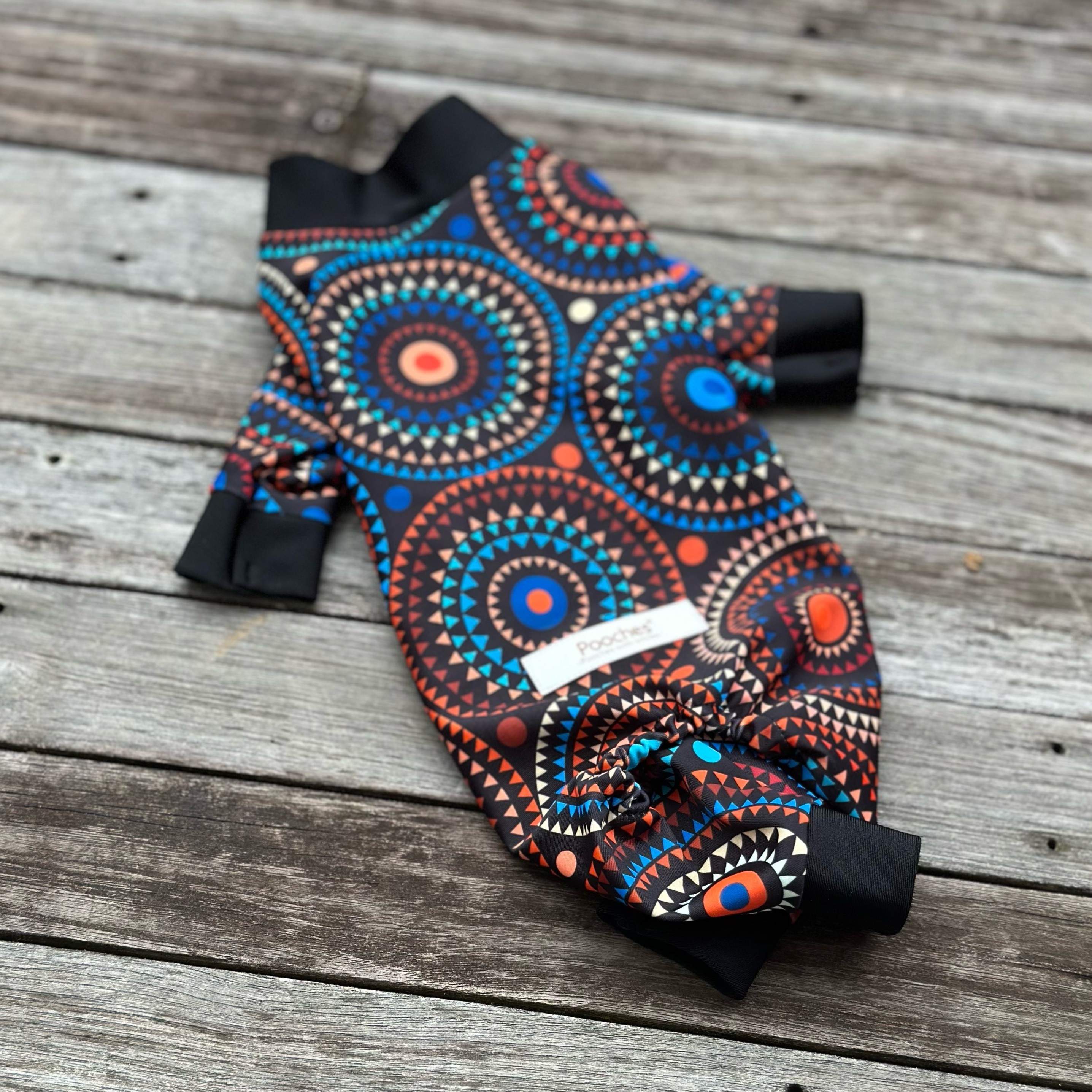 ブラック地に太陽のような模様がいっぱい記された