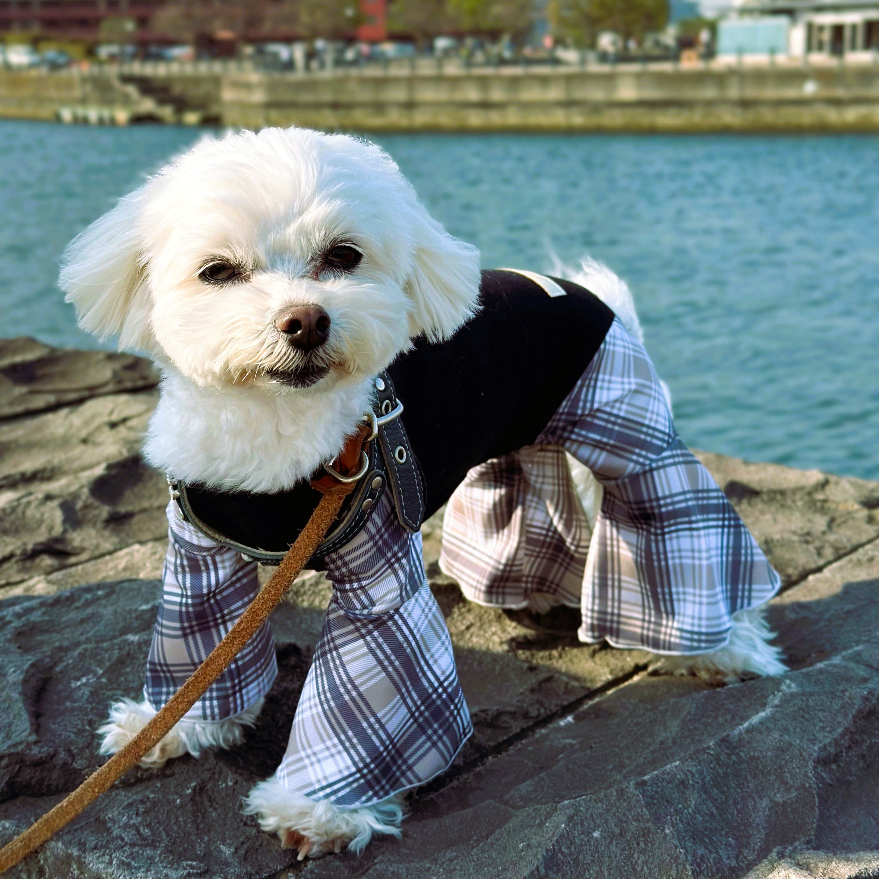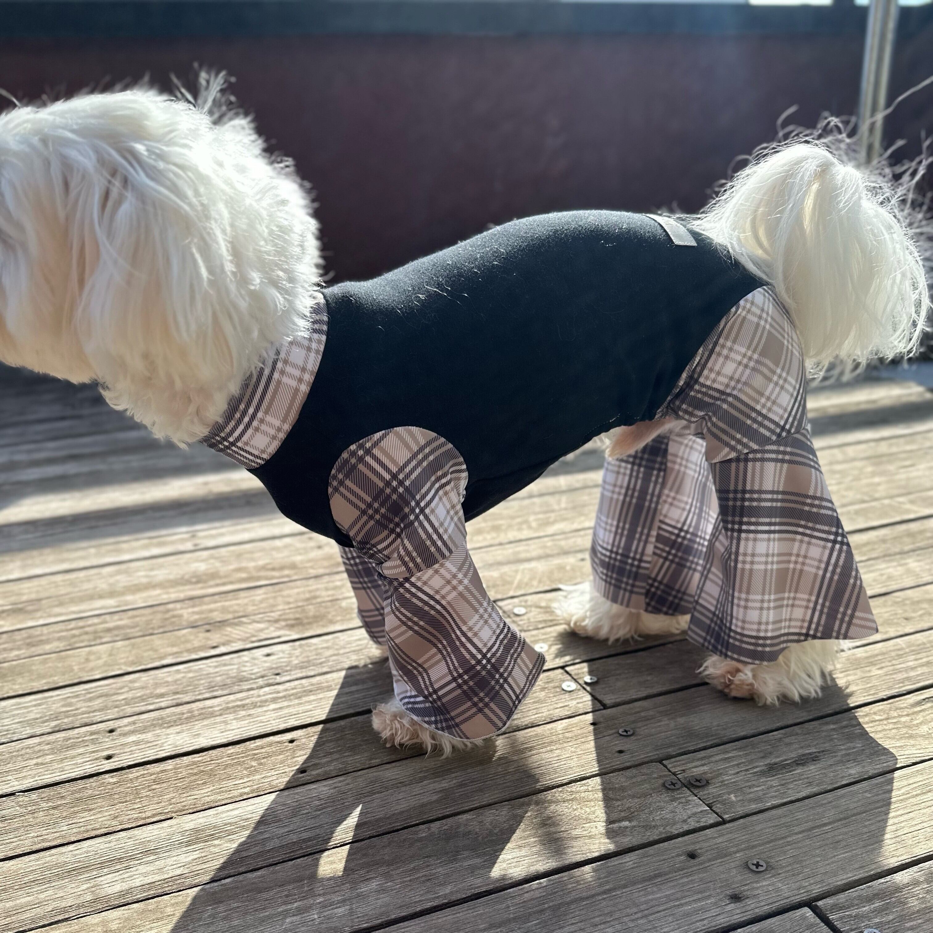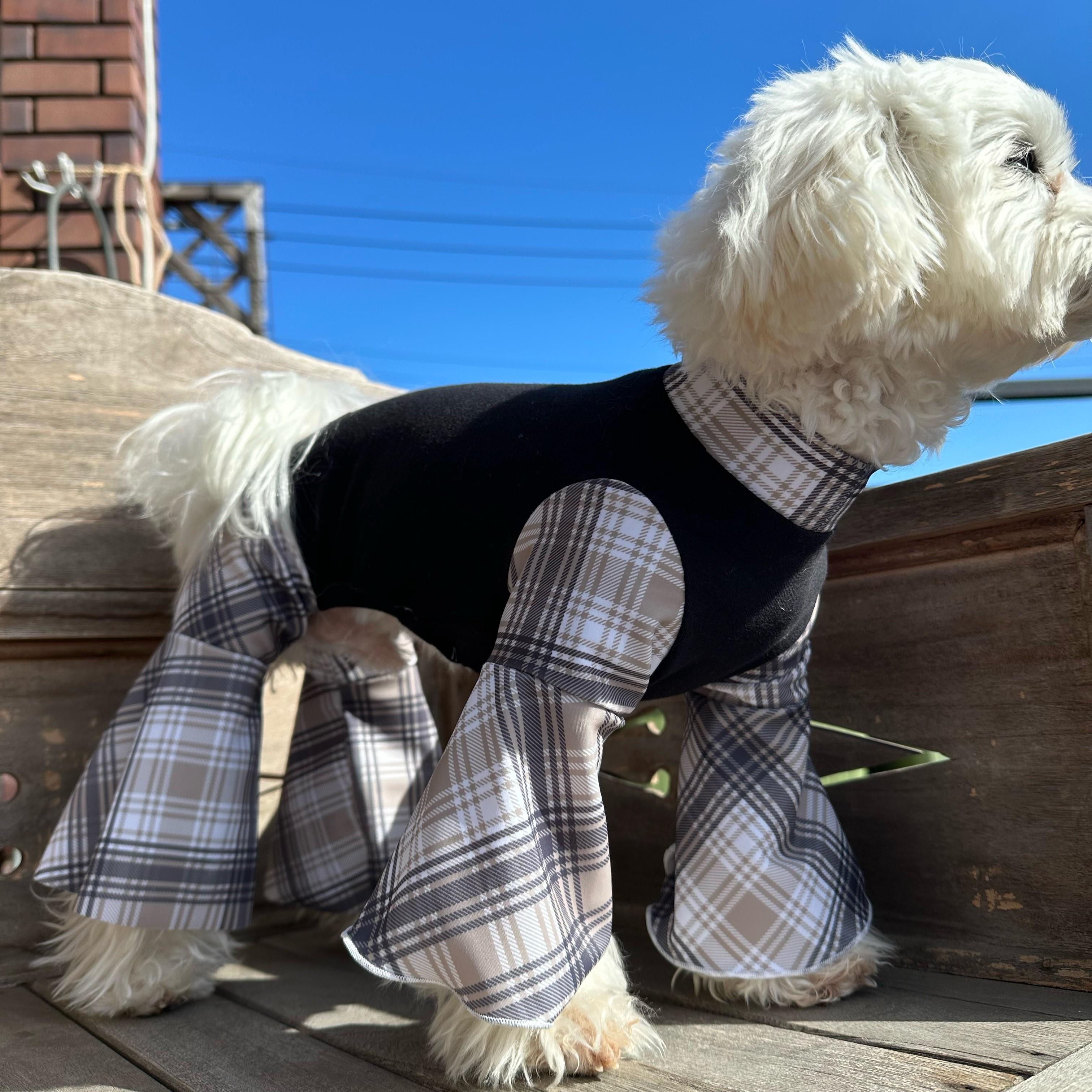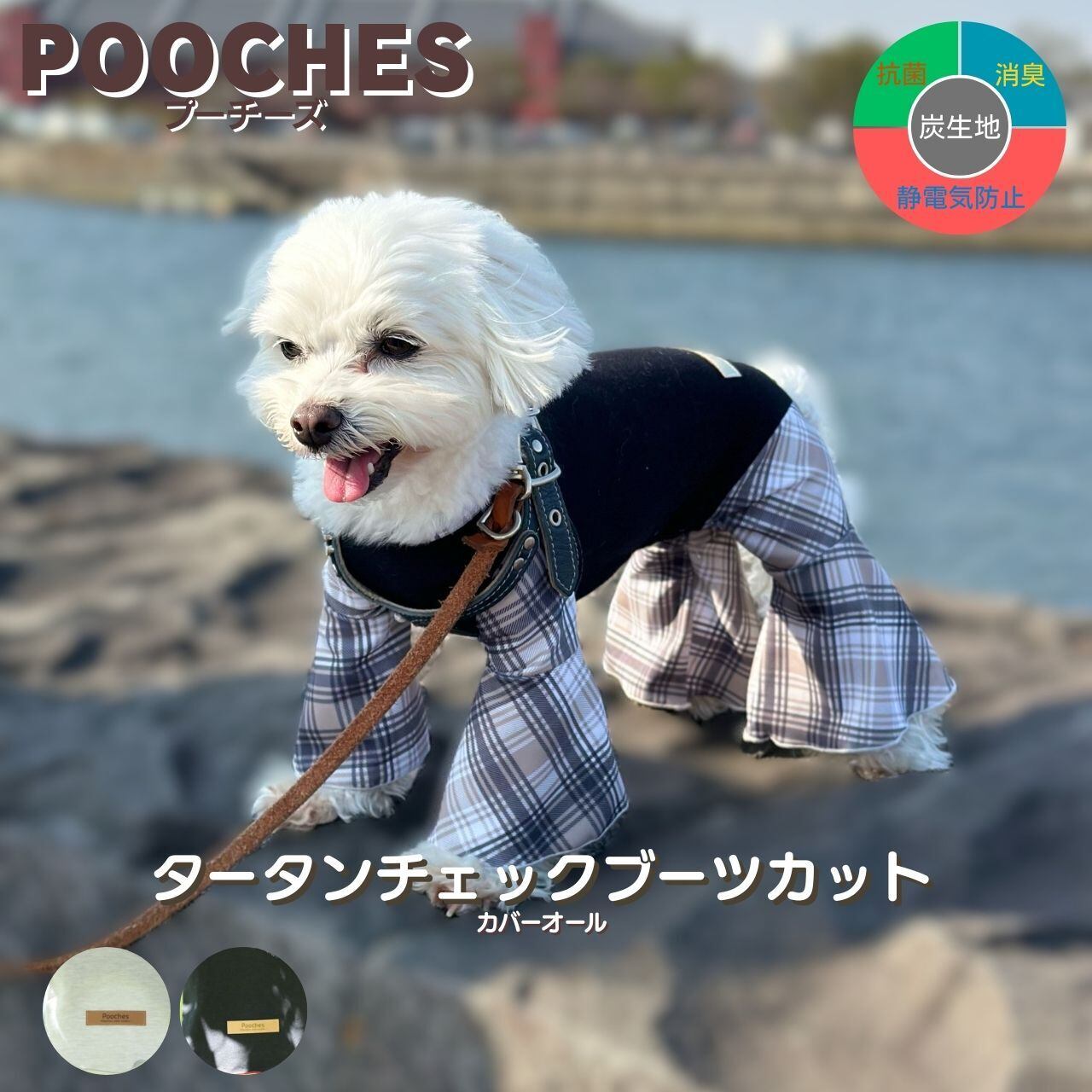 炭生地のブーツカットカバーオール「炭×タータンチェック」です